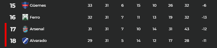 Con esta racha nefasta, Ferro se hunde en la tabla y quedó a tan solo un punto de caer a la Primera B. Debajo suyo aparecen Arsenal y Alvarado, lo que deja en claro que el margen de error es prácticamente nulo y que cualquier traspié puede significar un golpe histórico.