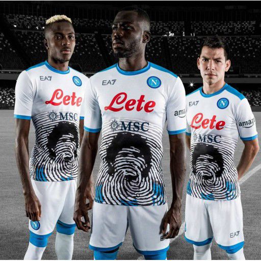 El vínculo con Maradona quedó plasmado en 2021, cuando Armani diseñó junto al Napoli una camiseta especial llamada “Maradona Game”, estrenada un año después de la muerte del ídolo argentino. La casaca, firmada por EA7, se utilizó en partidos ante Verona, Inter y Lazio, con una edición limitada de 1.926 unidades que llevaba una imagen estilizada de Diego junto a una huella digital.