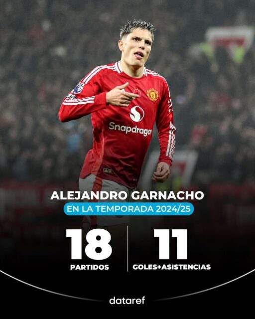 En lo que va de la temporada, Garnacho ha sumado 11 participaciones directas en goles, registrando 7 anotaciones y 4 asistencias en 18 partidos. Su crecimiento continuo lo posiciona como una de las figuras jóvenes más prometedoras del United y de la Premier League.